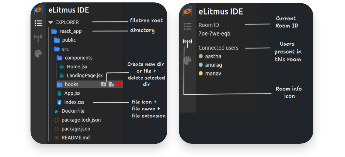 The Frontend architecture is composed of CodeMirror 6, a powerful code-editing tool. To enable multi-file support, a file explorer is seamlessly integrated, allowing users to create and delete files or folders within a nested structure. The status bar dynamically displays all open files until they are either closed or removed.