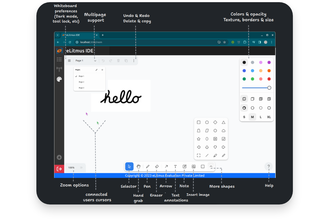 - Ability to save whiteboard content by downloading a local pdf copy: Simply by pressing Ctrl + P.
